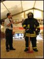 | Am Nachmittag fand eine Feuerwehr-Modenschau im Festzelt statt, bei der die Gäste einige Einsatzgarnituren bestaunen konnten. Neben den gewohnten Uniformen und der Brandschutzkleidung wurden ein Waldarbeiter-Anzug, ein Imkerschutz, ein Überlebensanzug für Gewässer, die Höhenretter-Uniform, sowie schwere Chemieschutzanzüge und Hitzeschutzanzüge vorgeführt. Marcel Walter, der die Modenschau moderierte, ging hier auf spezielle Details eines jeden Anzugs ein. So hat zum Beispiel der Waldarbeiter eine ganz spezielle Schutzkleidung, die innen aus einer Vielzahl langer Fasern besteht. Durchtrennt die Kette der Motorsäge die oberste Stoffschicht der Schutzhose, werden ganze Faserbündel herausgerissen. Die losen Fasern blockieren das Kettenrad völlig und bringen die Sägekette somit zum Stillstand. Dadurch wird das Risiko einer Verletzung erheblich vermindert.