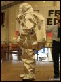 Weiterhin wurden Hitzeschutzanzüge in drei verschiedenen Ausführungen - von leichtem Schutz über mittleren bis hin zu schwerem Hitzeschutz - gezeigt. Während man einen Wohnungsbrand (600 bis 800°C) noch unter normaler Brandschutzkleidung löschen kann, verursachen bestimmte Feuer, wie zum Beispiel ein brennender Benzin-Tanklaster, erheblich höhere Temperaturen. Damit sich Feuerwehrleute dennoch dem Brand soweit nähern können, dass eine Brandbekämpfung möglich ist, gibt es Hitzeschutzanzüge. Diese bestehen aus einem speziellen Material, das die Wärmeentwicklung zumindest teilweise abweisen kann. Einige dieser Garnituren kommen aufgrund ihrer Spezialisierung so selten zum Einsatz, dass es sogar für Feuerwehrleute selbst eine höchst interessante Vorführung war.